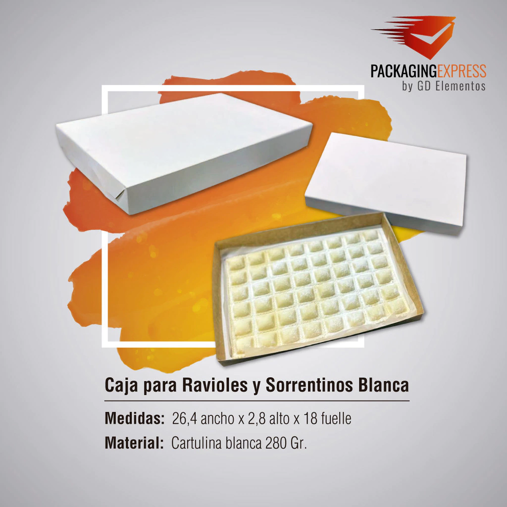 Caja Base y Tapa para Pastas, Ravioles, Sorrentinos Fácil Armado Cartulina Blanca