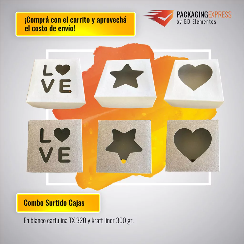 Caja Base y Tapa 1 pieza Caladas con Visor Combo Surtido Kraft